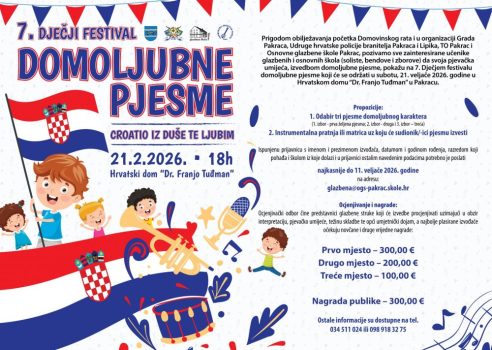 CROATIO IZ DUŠE TE LJUBIM Raspisan poziv za 7. Dječji festival domoljubne pjesme u Pakracu - Grad Pakrac