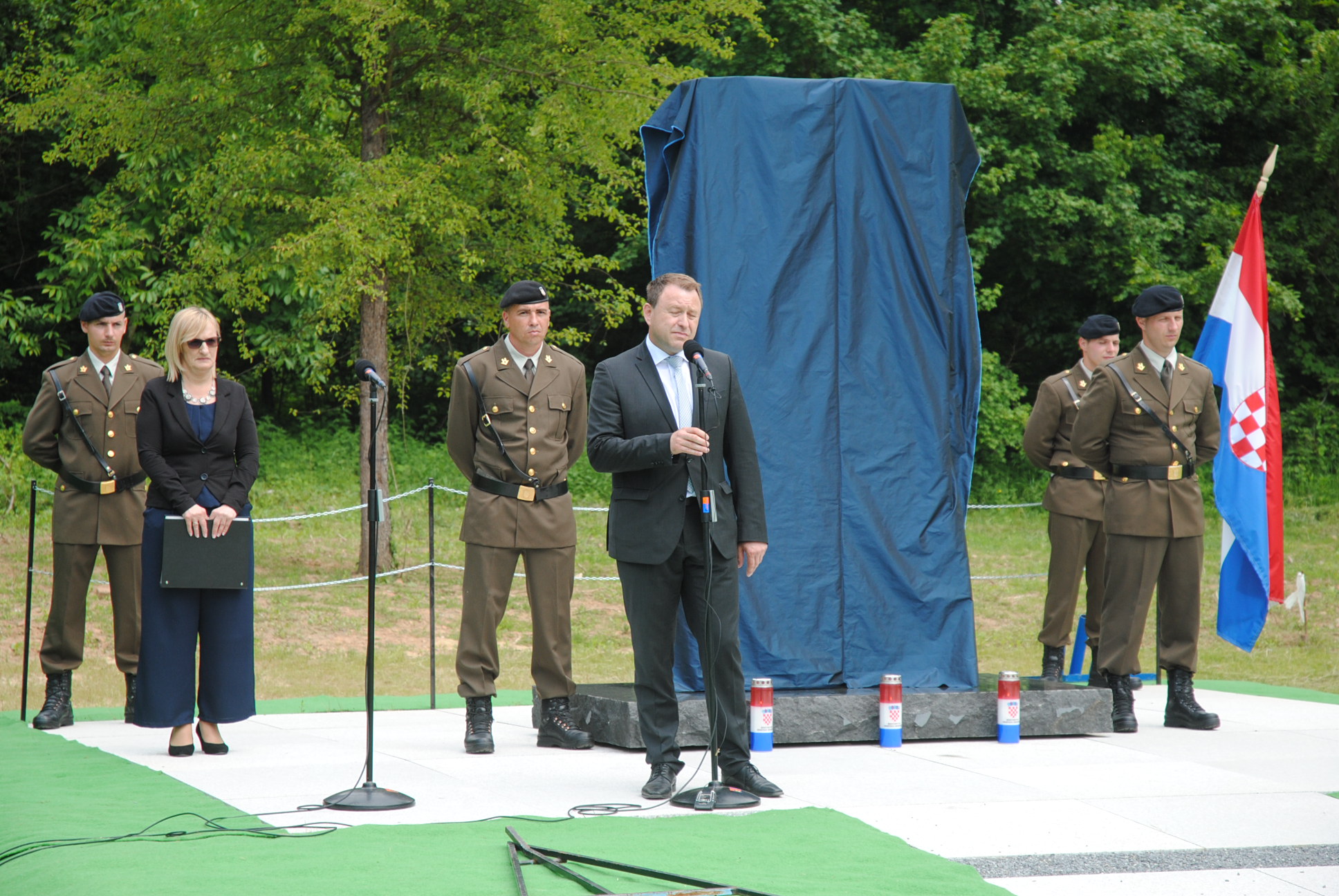 U ime predsjednice Republike Hrvatske okupljenima se obratio posebni savjetnik predsjednice za branitelje Ante Deur rekavši da je ova grobnica još jedan pokazatelj da agresor nije radio razliku između vojnika, policajaca i civila, da mu nije bila upitna nacionalnost, već da je samo želio ubijati. Zato danas šaljemo poruku svima onima koji su nam željeli zlo, ali poruku mira. Mi svi svjedoci toga vremena, koji smo imali privilegiju sudjelovati u ratnim zbivanjima i preživjeti ih, moramo nadolazećim generacijama usaditi ponos što smo ostvarili san mnogih prijašnjih generacija i stvoriti Hrvatsku državu. Budimo uistinu ponosni na Domovinski rat i stvaranje Hrvatske, na čemu moramo svi zajedno raditi uvrštavanjem spoznaje o tom vremenu u kurikulume hrvatskih škola i fakulteta.