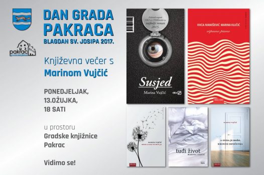 Dan žena je iza nas, a Dan grada Pakraca pred nama – dvostruki je to razlog da nekako u sredini između tih dvaju dana ugostimo jednu od najčitanijih suvremenih hrvatskih književnica, Marinu Vujčić.