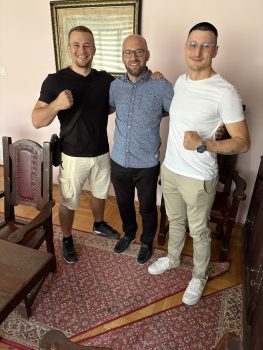Danas je gradonačelnik Tomislav Novinc primio u posjet dva izuzetna pakračka sportaša – MMA borca Leona Krajačića, osvajača titule prvaka poluteške kategorije do 93kg i Ivana Kiša, pobjednika borbe u velter kategoriji do 77 kg na nedavnom održanom MMA spektaklu BFN 7 Uprising Pakrac. Prvi je to i povijesni borilački spektakl koji se održao u Pakracu, i to upravo u suorganizaciji Crobrana, udruge borilačkih vještima kojoj Krajačić i Kiš pripadaju.