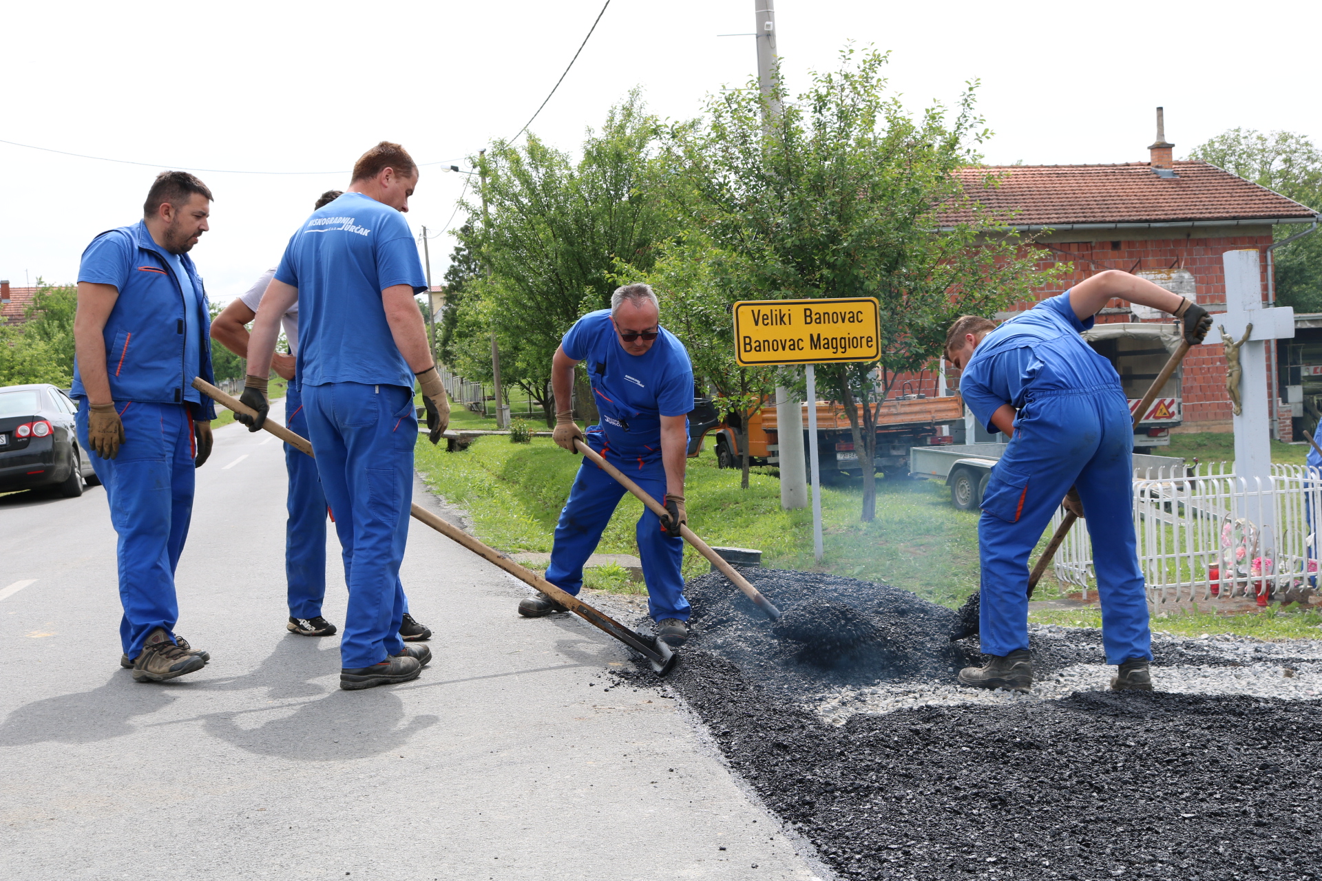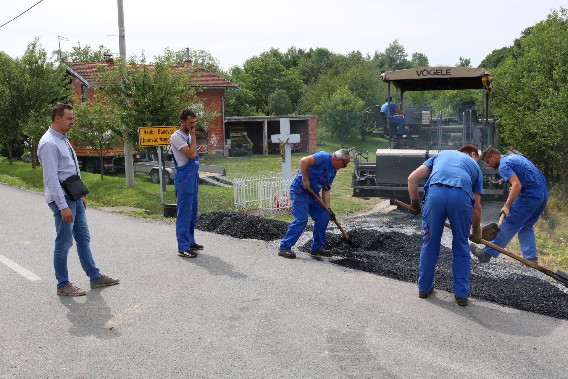 Danas prijepodne u Velikom Banovcu započeli su radovi na asfaltiranju pristupne ceste prema mjesnom groblju koje zajednički koriste mještani Velikog Banovca i Gornje Obriježi. Radove je obišao pakrački dogradonačelnik Marijan Širac od kojeg smo doznali da će se asfaltiranje kompletne dionice duge nešto više od 400 metara izvoditi u nekoliko faza, a radovima koji su upravo započeli bit će presvučeno prvih 60 metara. Asfaltni sloj je širok 290 centimetara, a vrijednost radova samo ove faze je 25 tisuća kuna. Sredstva je osigurao Grad Pakrac, a radove izvode djelatnici i mehanizacija požeške tvrtke Niskogradnja Jurčak. Širac je najavio i nastavak asfaltiranja po fazama u narednom periodu ovisno o okolnostima, no isto tako je potvrdio neupitnost dovršetka ovog projekta značajnog za mještane ovog područja.
